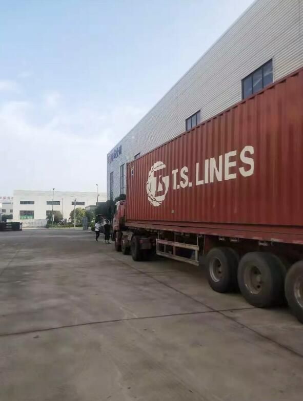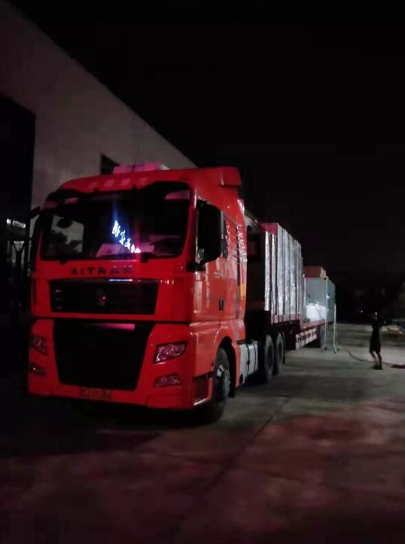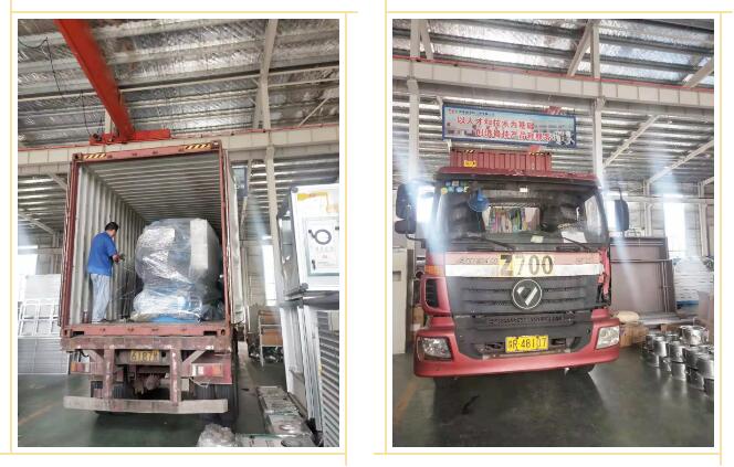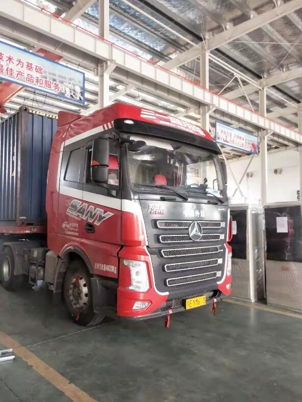 為了訂單準時發車,晉成生產車間的工人們互相配合,共同協作,將設備一件件的搬往運輸車廂。